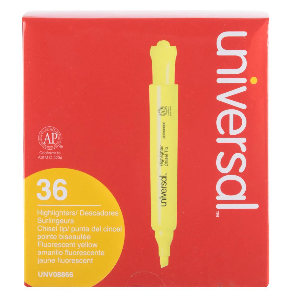 - (36/Pack) Chisel Tip Desk Highlighter – Fluorescent Yellow Ink – 08866