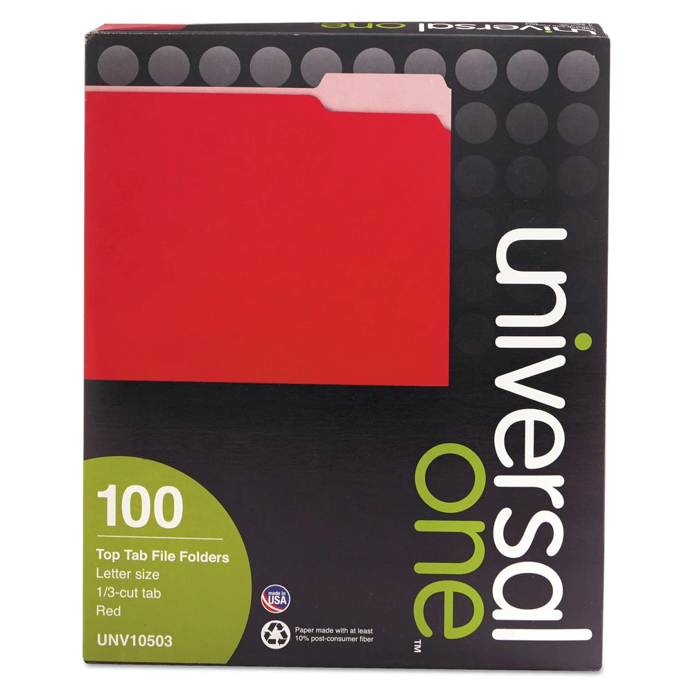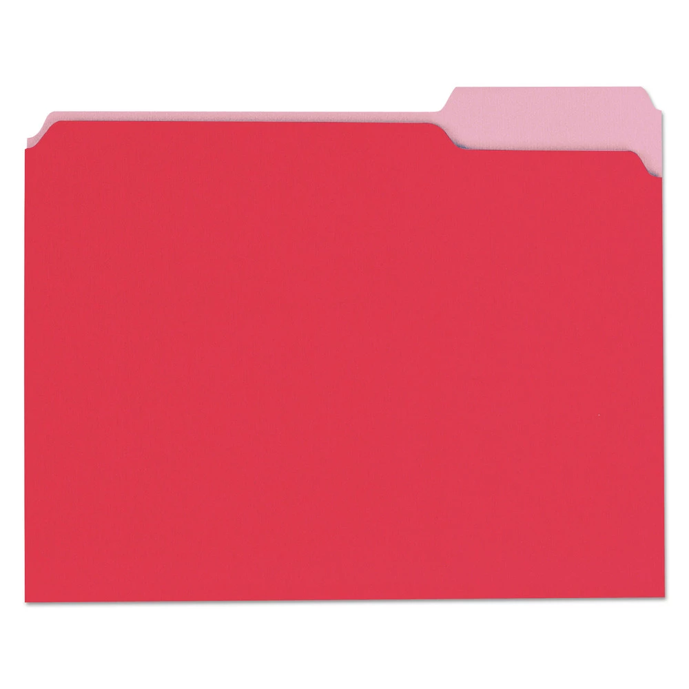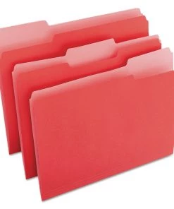 - (100/Box) 1/3-Cut Tabs Deluxe Colored Top Tab File Folders – Letter Size, Red/Light Red – 10503