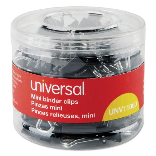 - (60/Pack) Mini Binder Clips in Dispenser Tub – Black/Silver – 11060
