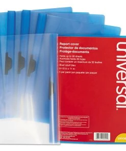 - (5/Pack) Holds 30 Pages, Plastic Report Cover with Clip – Letter, Clear/Blue – 20525