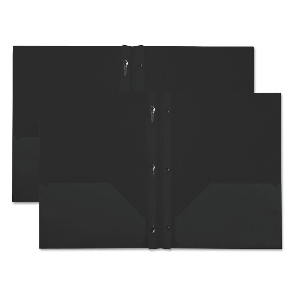 - (10/Pack) 100-Sheets, Plastic Twin-Pocket Report Covers with 3 Fasteners – Black – 20550