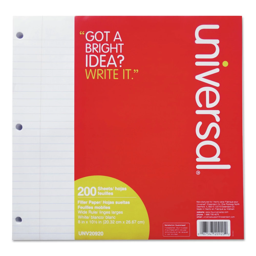 - (200/Pack) 8 in. x 10.5 in., 3-Hole, Wide/Legal Rule, Filler Paper – 20920