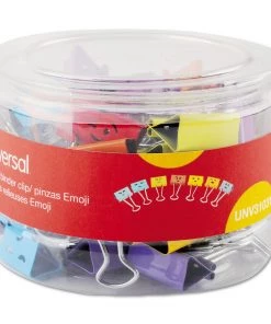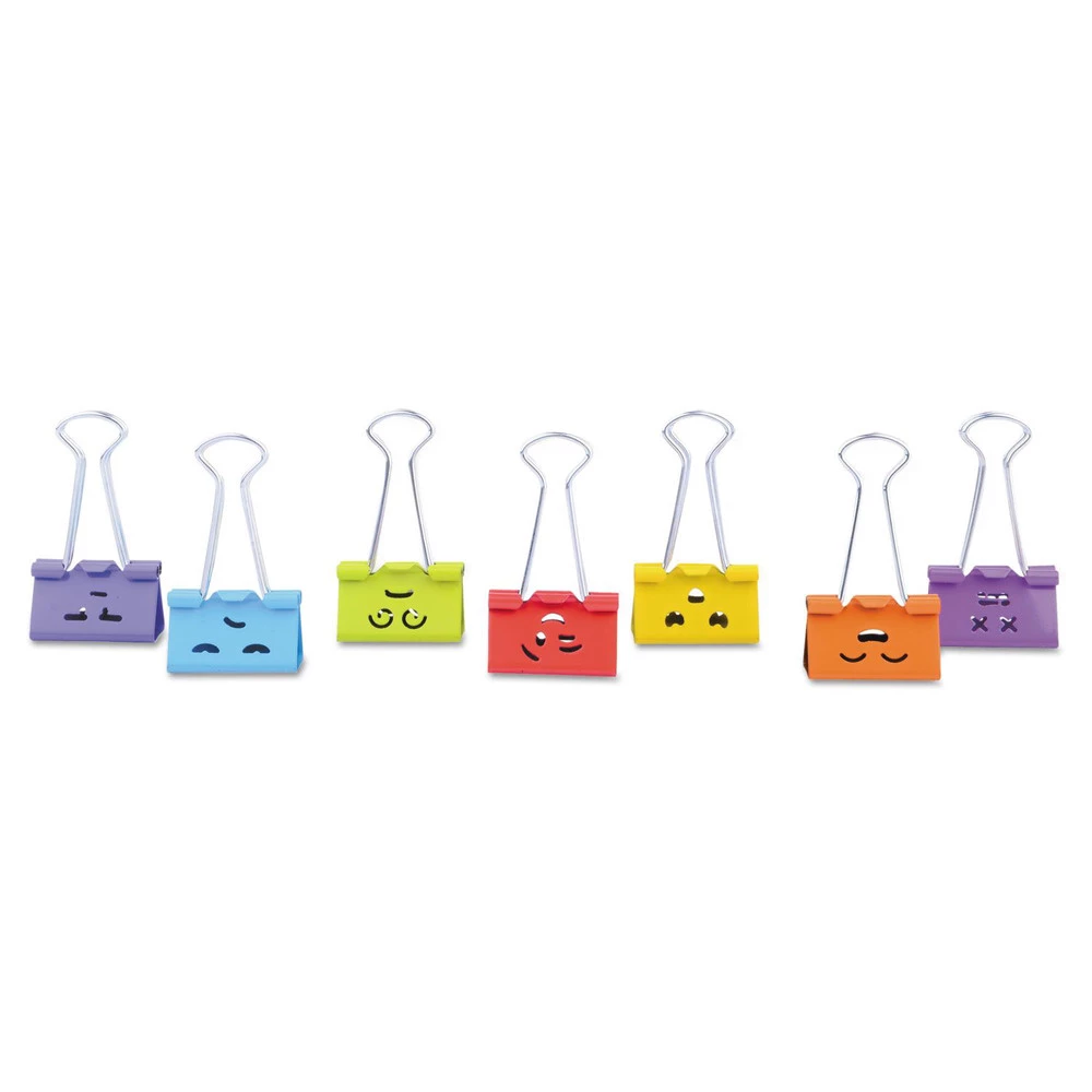 - (42/Pack) Emoji Themed Binder Clips in Dispenser Tub – Medium, Assorted Colors – 31031