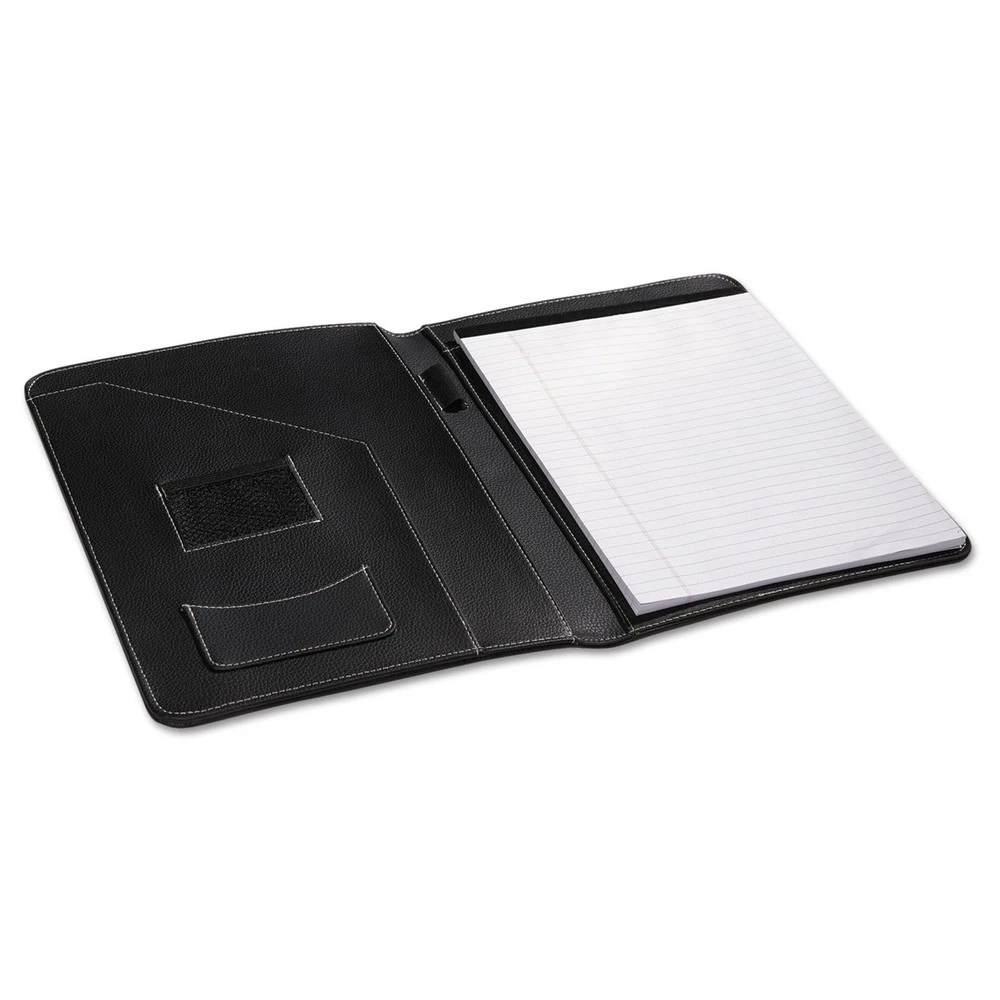 - Leather-Look Inside Flap Pocket Pad Folio with Card Holder – Black – 32660