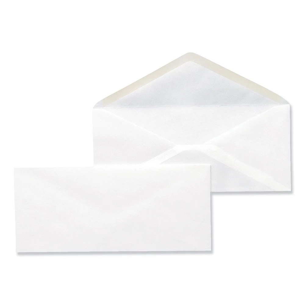 - (500/Box) 4.13″ x 9.5″ Gummed Closure Sq. Flap Business Envelopes – WHT – 35210