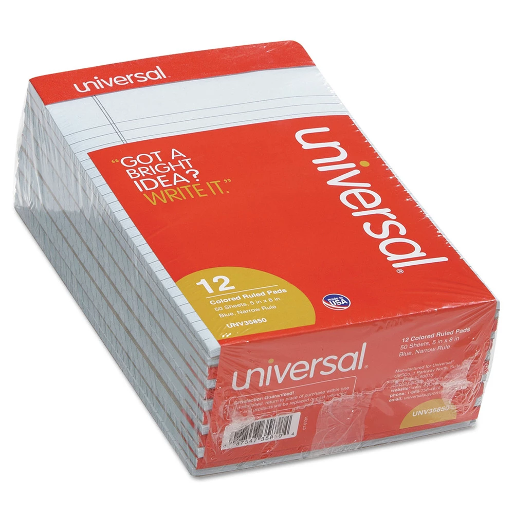 - (1-Dozen) 5 in. x 8 in., 50-Sheets, Colored Perforated Writing Pads – Blue – 35850