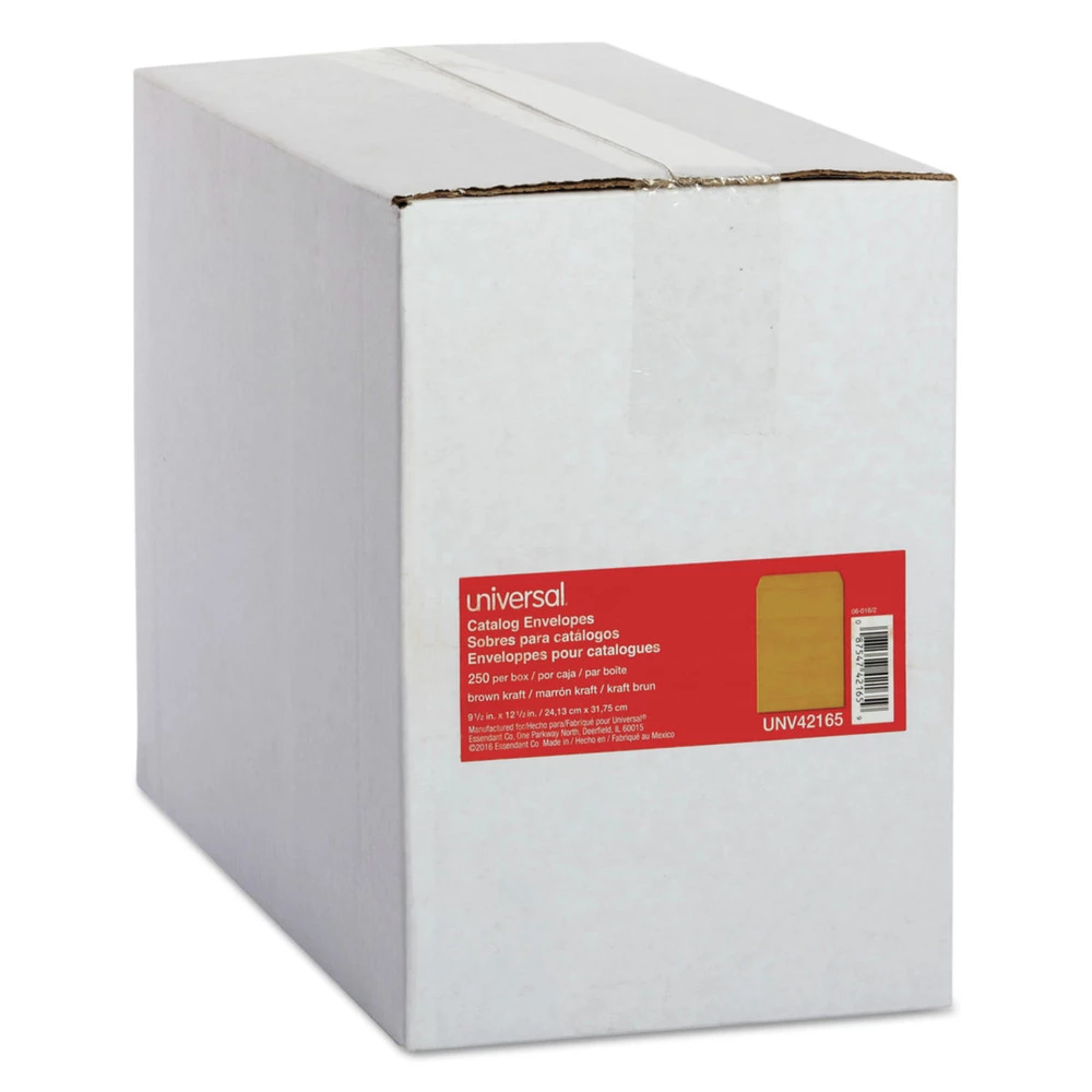 - (250) #12-1/2 Square Flap Gummed Closure 9.5 in. x 12.5 in. Catalog Envelopes – Brown Kraft – 42165