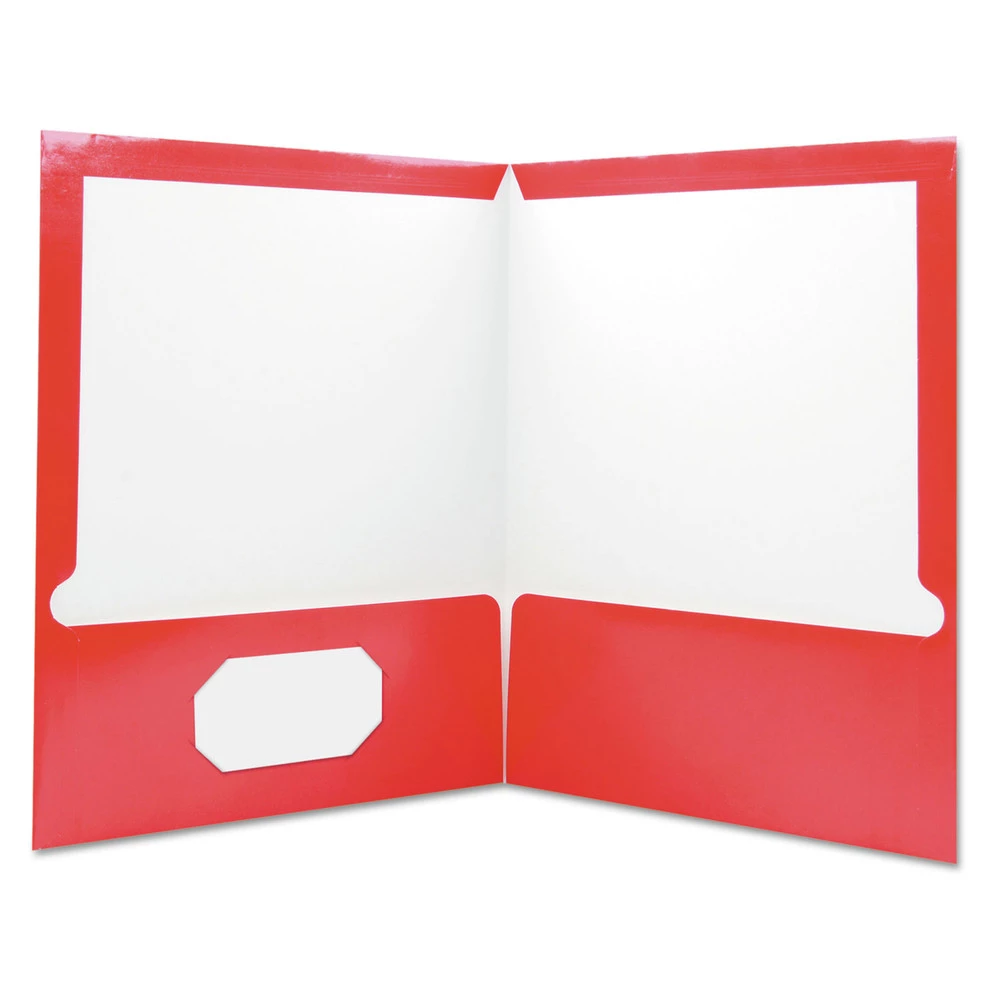 - (25/Pack) 11 in. x 8-1/2 in. Cardboard Paper, Laminated Two-Pocket Folder – Red – 56420