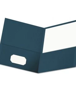 - (25/Box) 2 Pocket Embossed Leather Portfolio – DRK BLU – 56638