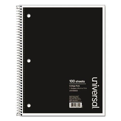 - 11 in. x 8.5 in. 100 Sheets, 1 Subject, Medium/College Rule, Wirebound Notebook – Black Cover – 66600