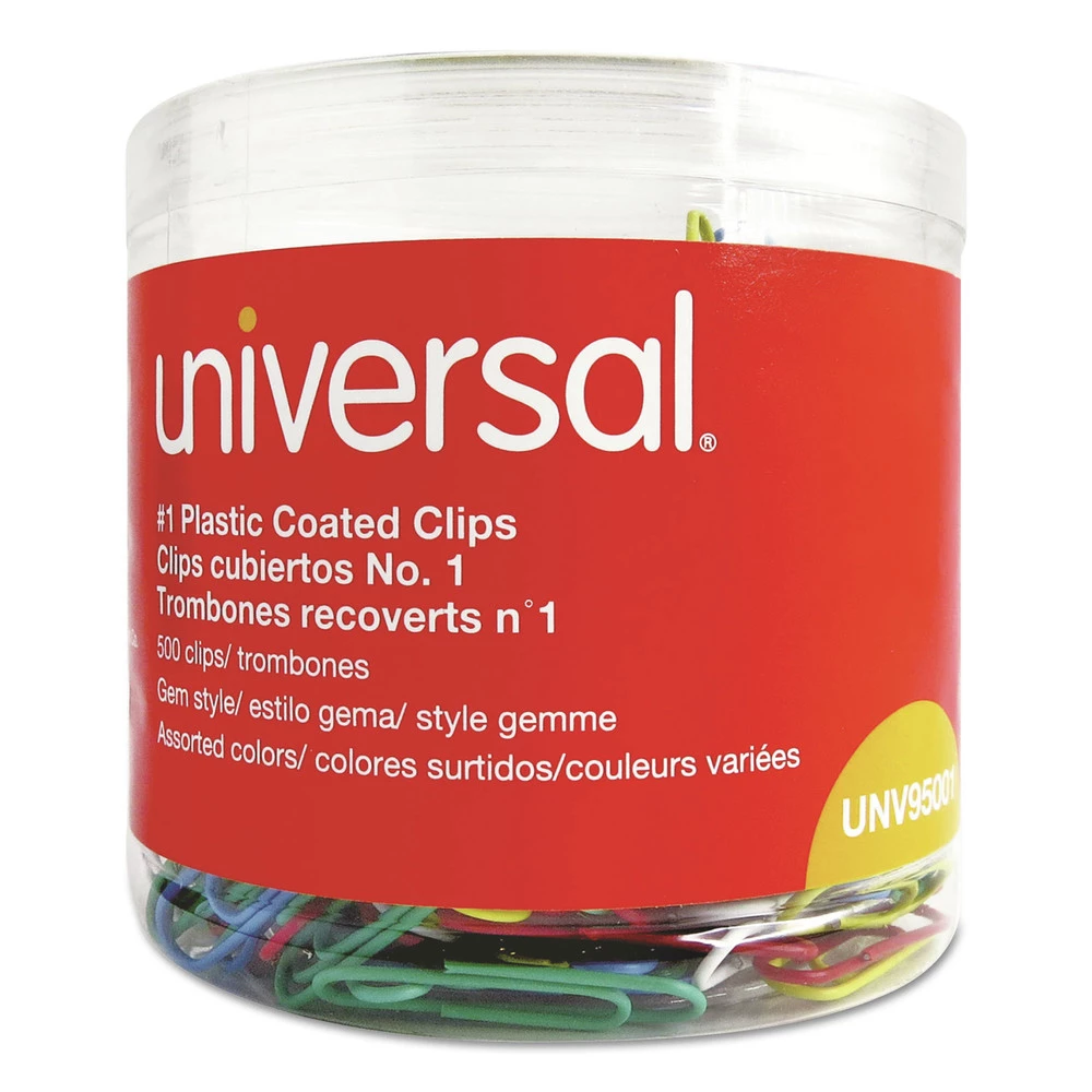 - (500/Pack) Small (No. 1), Plastic-Coated Paper Clips – Assorted Colors – 95001